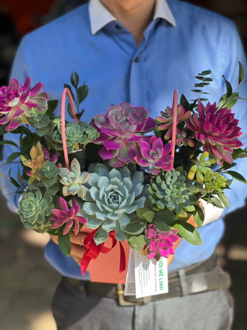 Giỏ hoa sen đá tone đỏ